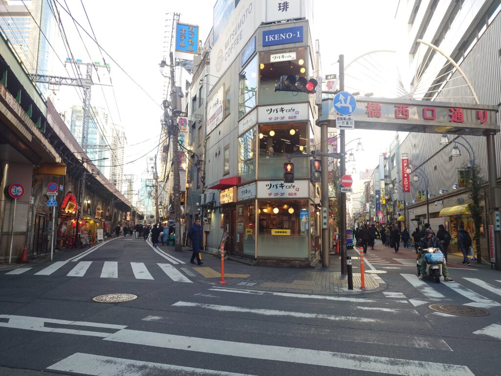 新橋駅の烏森口を出たら、左手方向へ進みます。